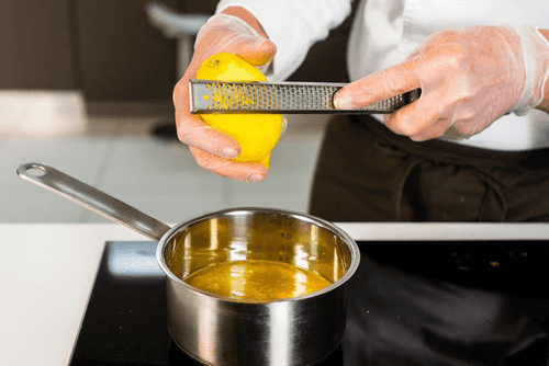 Натереть в соус цедру четверти лимона. Размешать, уваривать на среднем огне в течение пяти минут. Добавить ликер «гран-марнье». Оставить все увариваться на небольшом огне, пока пекутся блины.