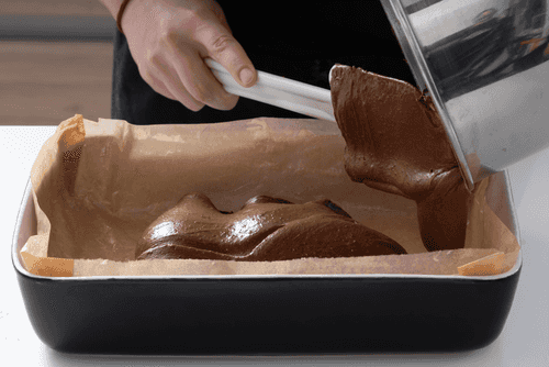 Выложить тесто в форму, проложенную пекарской бумагой. Поставить в духовку, разогретую до 170 градусов, на 20 минут.