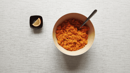 Морковный жмых смешать с кокосовой стружкой и специями, добавить растительное масло и медовую воду. Снова перемешать.