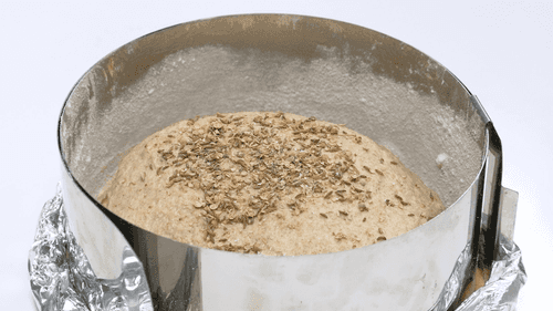 Смазать форму для хлеба растительным маслом и присыпать мукой. Выложить тесто в форму, присыпать пряностями, накрыть и поставить в теплое место до увеличения объема вдвое.