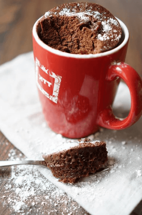 По истечению срока достать из микроволновки; кекс готов.