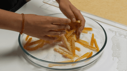 Выложить апельсиновые корки на противень и оставить их сушиться минимум на 8 часов, а лучше на сутки.