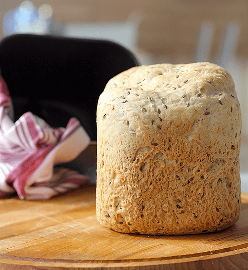 Все ингредиенты, кроме семян тыквы, загрузить в хлебопечку в соответствии с инструкцией. В разных хлебопечках может быть по-разному: где-то сначала закладываются влажные ингредиенты, затем — сухие, а где-то наоборот. Дрожжи всыпать в муку так, чтобы они не соприкасались с водой и солью. Лен лучше замочить в кипятке на несколько минут, затем воду слить.