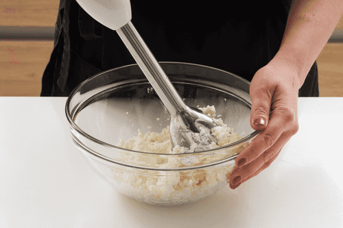 Творог пробить в блендере или протереть через сито.