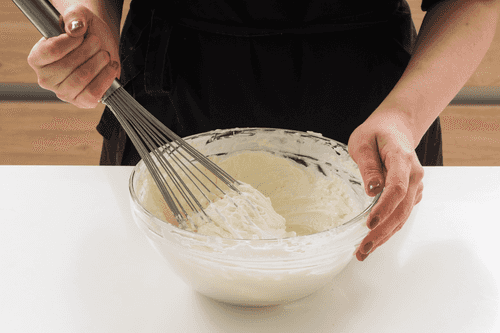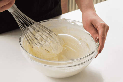 Делать это удобно венчиком вручную или на самой малой скорости миксера, иначе крем может получиться жидким.