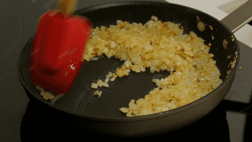 Нарезать лук кубиком и обжарить на растительном масле до золотистого цвета.