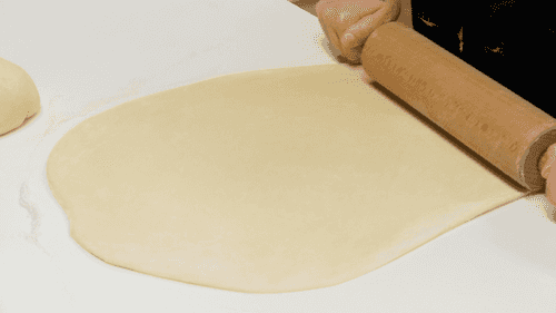 Расстоявшееся тесто разделить на две равные части и тонко раскатать его.
