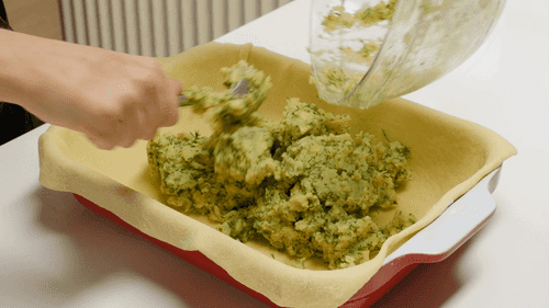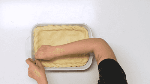 Фигурно залепить края, при желании можно украсить пирог обрезками теста. Отправить пирог в духовку, разогретую до 180 градусов, на 25–30 минут или до тех пор, пока тесто не подрумянится.