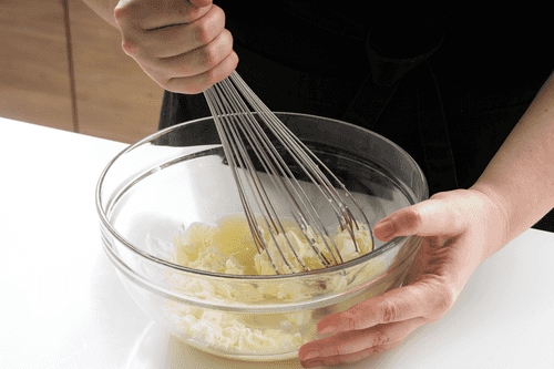 Взбить яйца с солью до образования пены. Влить к яйцам кипяток, не переставая взбивать. Пена увеличится вдвое.