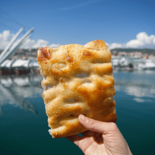 Генуэзская фокачча — это хлебное изделие, родом из солнечной Лигурии, ставшее символом гастрономической культуры Генуи. Мягкое и воздушное тесто, обладающее характерным ароматом оливкового масла, создает удивительное сочетание хрустящей корочки и нежной сердцевины. Этот хлеб идеально подходит как для простого перекуса, так и в качестве дополнения к различным блюдам, придавая каждому приему пищи легкий средиземноморский акцент. Фокачча часто подается на стол в дни праздников и торжеств, становясь неотъемлемой частью местной традиции.