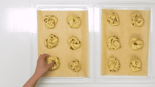 Переложить булочки на противень, накрыть полотенцем и убрать в теплое место еще на 30 минут.