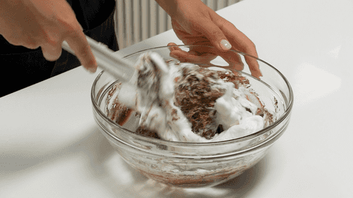 Венчиком смешать шоколад с белками до однородной массы.