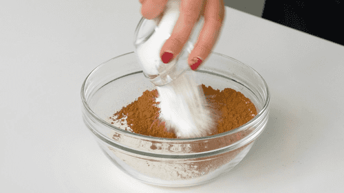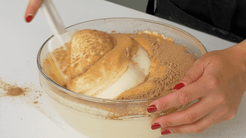 Просеять через сито сухую смесь в яичную смесь и вмешать силиконовой лопаткой, двигаясь снизу вверх. Делать это нужно быстро, чтобы пена не успела опасть.