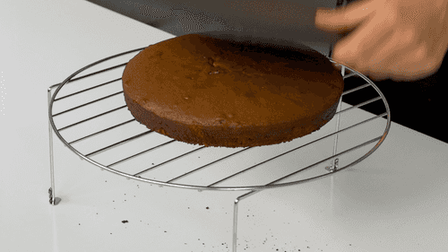 Готовому бисквиту дать немного остыть в течение 5 минут. Затем достать из формы и остудить на решетке.