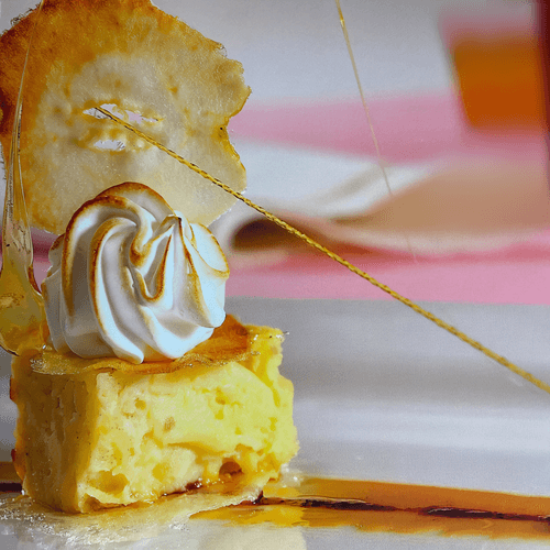 Гратен из яблок — изысканный десерт латиноамериканской кухни, который объединяет мягкость запечённых фруктов и воздушную лёгкость безе. Этот рецепт отражает любовь к простым, но утонченным сочетаниям вкусов, беря свое вдохновение из европейской традиции гратенов. Нежная основа из свежих яблок, сгущенного молока и корицы превращается в ароматное лакомство, а карамелизированное безе придаёт завершённую текстуру. Сладость блюда уравновешивается кислинкой зелёных яблок, создавая гармоничный вкус. Подача с хрустящими сушеными яблоками придает десерту выразительность, а золотистая корочка безе делает его не только гастрономическим наслаждением, но и эстетическим удовольствием. Гратен отлично сочетается с чашкой ароматного кофе или теплым чаем, превращая каждую порцию в момент истинного уюта.