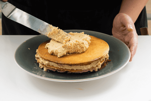 Собрать торт. Прослоить коржи кремом, верх и бока торта обсыпать крошкой из обрезков коржей. Убрать торт в холодильник минимум на 3 часа, а лучше — на ночь.