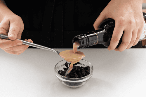 Чернослив, если он жестковат, размочить в теплой воде. Затем мелко нарезать, полить ликером, накрыть пленкой и оставить в холодильнике до момента, когда нужно будет собирать торт.