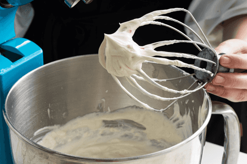 Постепенно влить кефир, продолжая вымешивать массу до однородной консистенции. Масса должна вспениться.