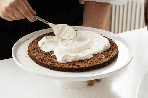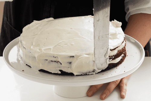 Промазать кремом бока и верх торта, разровняв крем шпателем.