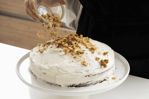 Посыпать торт орехами и убрать в холодильник на 4 часа.