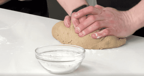 Когда тесто соединится в шар, обмять его руками.