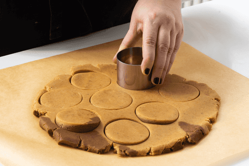 Рюмкой или кольцом вырезать круглые печенья диаметром 5 см.