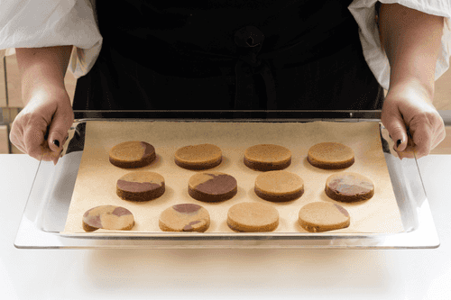 Выложить печенья на застеленный бумагой для выпечки противень. Выпекать в разогретой до 200 градусов духовке 15–20 минут, печенья должны стать золотыми, но не подгореть.