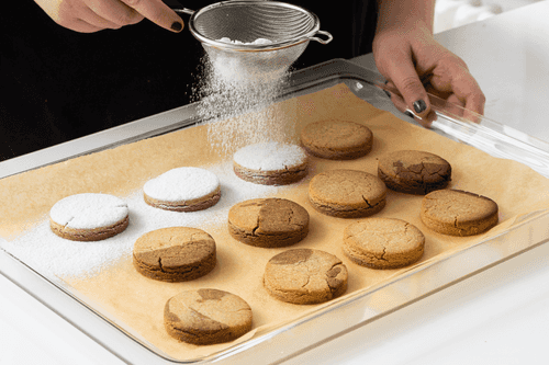 Достать печенья, осторожно снять с противня и дать им полностью остыть. Перед подачей посыпать сахарной пудрой.