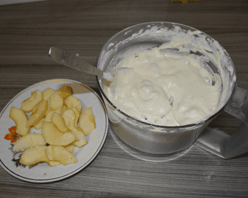 Размешать круговыми движениями сверху вниз, чтобы пена вспушила творожную смесь.
