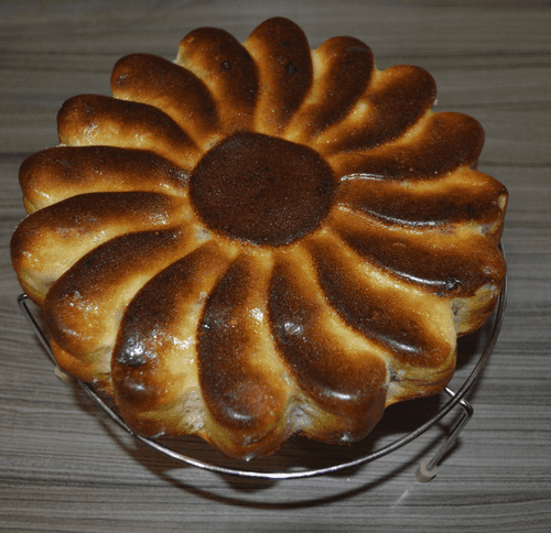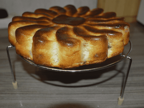 Поставить в хорошо прогретую духовку в среднюю часть и выпекать при 210 градусах до золотистой корочки. Время выпекания — примерно 45 минут.