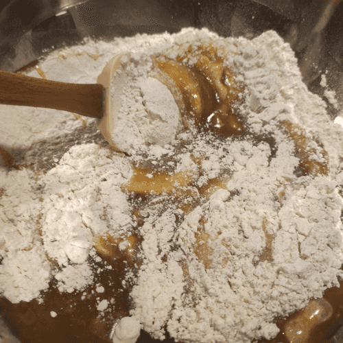 Просеять муку и разрыхлитель, добавить к ним корицу и соль, перемешать.