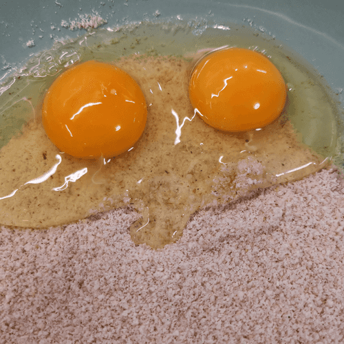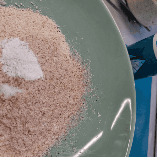 Миндальную муку высыпать в широкое блюдо.