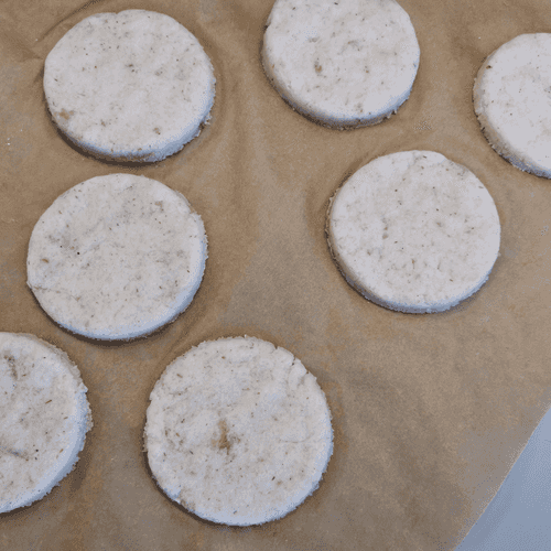 Раскатать тесто. Сделать лепешки с помощью специальной формы или стакана.