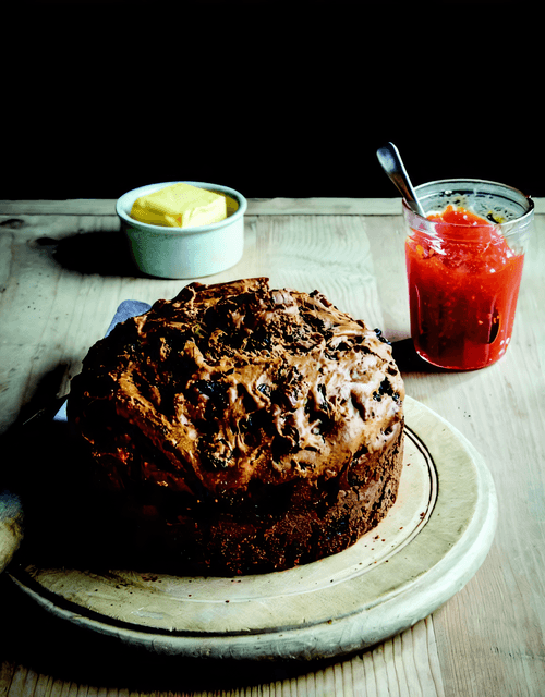 Ложкой выложить его в подготовленную форму. Выпекать около 2 часов, верх должен подрумяниться, края — легко отходить от формы, а шпажка — выходить из центра кекса чистой.
