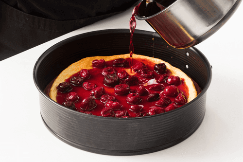 На поверхности остывшего торта разложить ягоды и залить тонким слоем сока. Отправить торт в холодильник еще на 30 минут, чтобы желе полностью застыло.