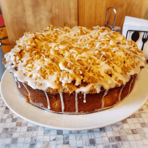 Пирог с персиками, штрейзелем и сахарной глазурью
