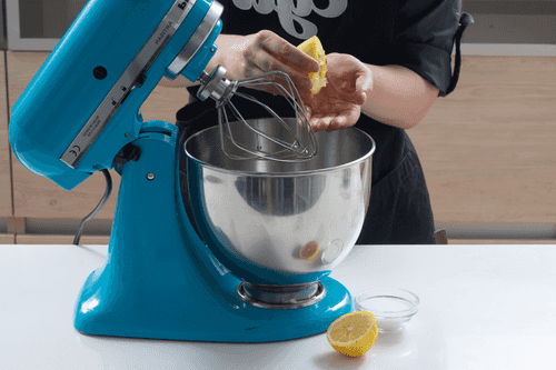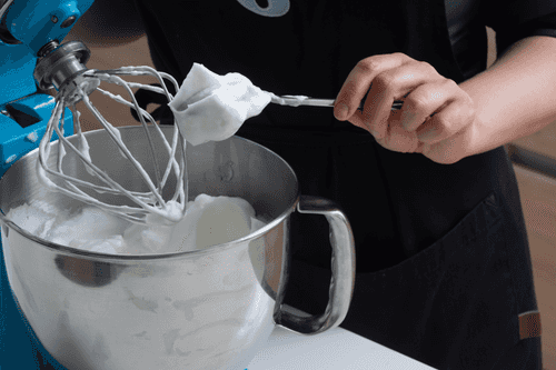 Консистенция пены должна быть такой, чтобы она не вываливалась из чаши миксера, если ее перевернуть.