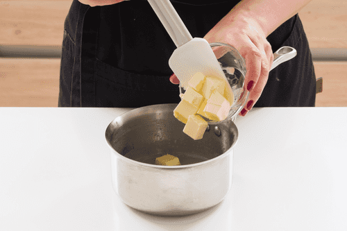 Снять сотейник с огня, добавить сливочное масло или маргарин и размешать до растворения. Смесь остудить.