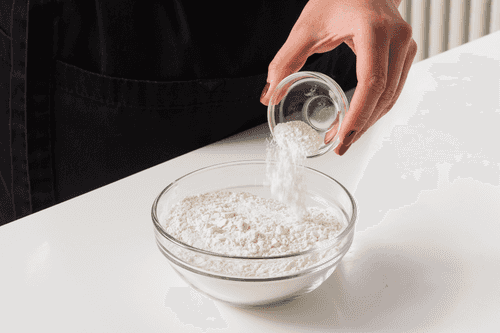 Муку смешать с разрыхлителем.