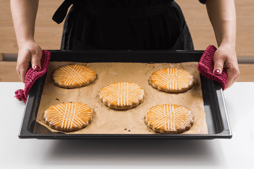 Выпекать коржики в разогретой до 200 градусов духовке 10–12 минут.
