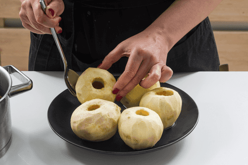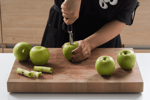 У яблок удалить сердцевину, оставив их целыми.