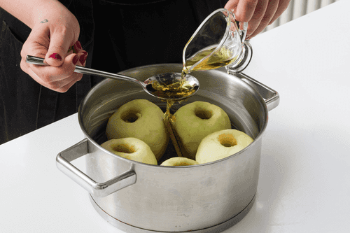 Выложить яблоки в сотейник, смазанный маслом.