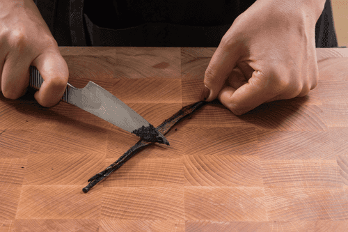 Вынуть семена из ванильного стручка.