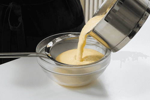 Процедить получившийся крем через сито, чтобы избавиться от возможных комочков.