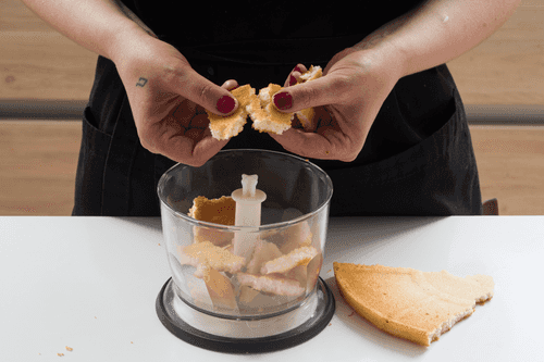 Измельчить бисквит в блендере, посыпать им яблоки.
