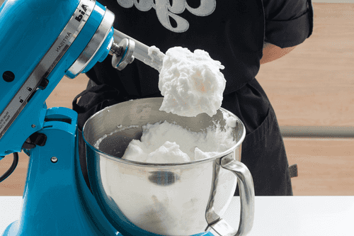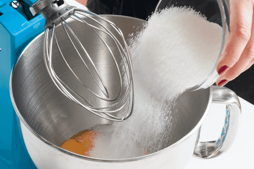 Отдельно взбить белки с оставшимся сахаром до крепкой пены.