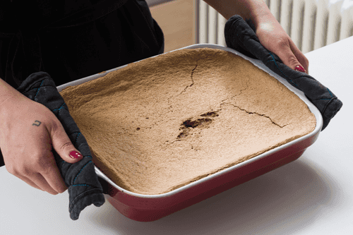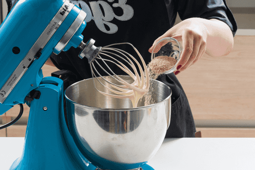 Через сито просеять какао в чашу с желтковой массой, добавить специи и снова перемешать.
