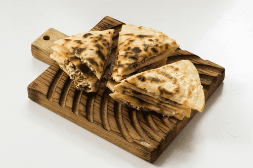 Разрезать лепешки на несколько частей и подавать.