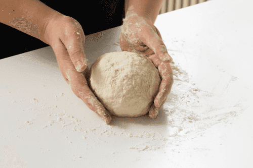 Когда из смеси получится мягкое, довольно липкое тесто, выложить его на доску и слегка вымесить. Руки присыпать мукой — иначе все тесто останется на них.