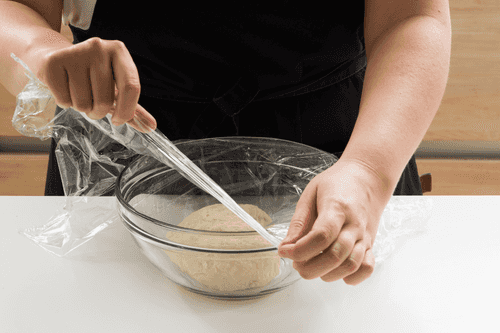 Снова вернуть тесто в миску, накрыть пленкой и дать постоять 15 минут.